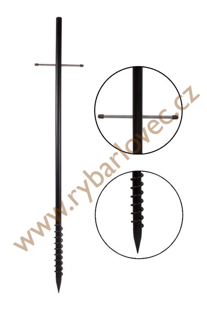 Ocelový držák deštníku se závitovou spirálou a vnitřním závitem slouží jako náhrada spodní tyče bežných rybářských deštníků. Používá se místo běžné hliníkové tyče, která je standardní součástí běžných rybářských deštníků. Ocelové provedení zabezpečuje mimořádnou pevnost i v silném větru. Navařená spirála zabezpečuje pohodlné zavrtávání tyče i do písčitých a štěrkových podloží. Konec tyče je navíc vybavena o vnitřní závit, který se standardně používa u signalizátorů záběru, případně u různých koncovek. Z tohto důvodu je možno tyč použít také jako pevnou vidličku.