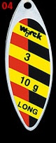 Dlouhé protáhlé křidélko této třpytky rotuje kolem osy pod úhlem 30 stupňů. To umožňuje vést nástrahu hlouběji pod hladinou. Dostanete se i do nejhlubších úkrytů dravců. Různé velikosti a široká škála barev Vám dávají možnost vybrat si správnou nástrahu pro lov všech dravých ryb v každých podmínkách.